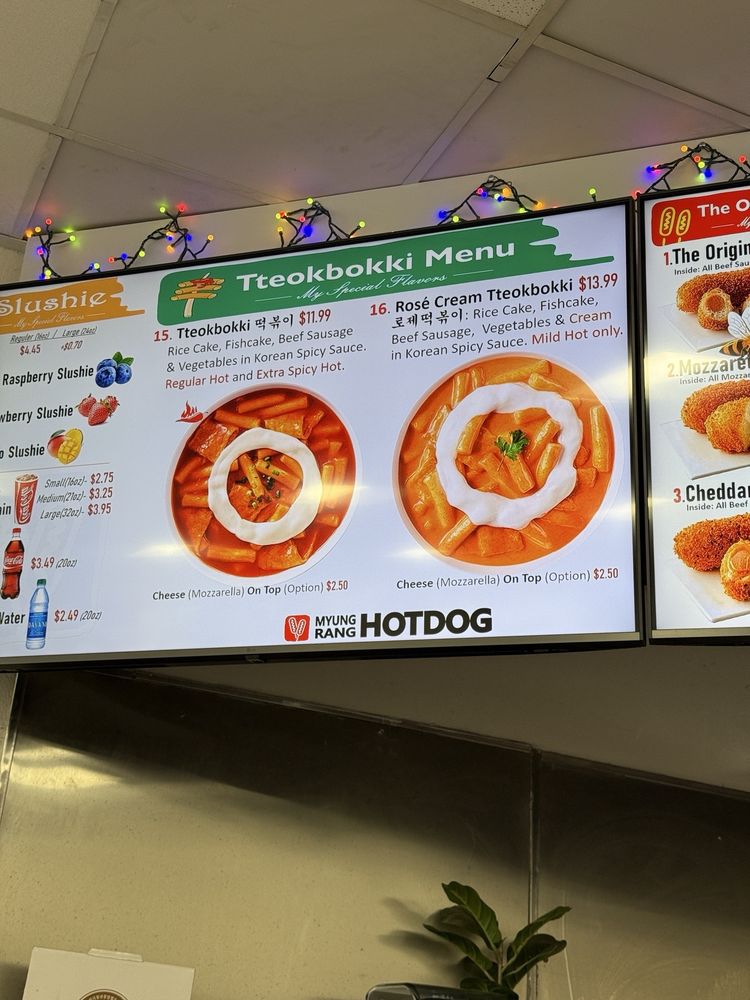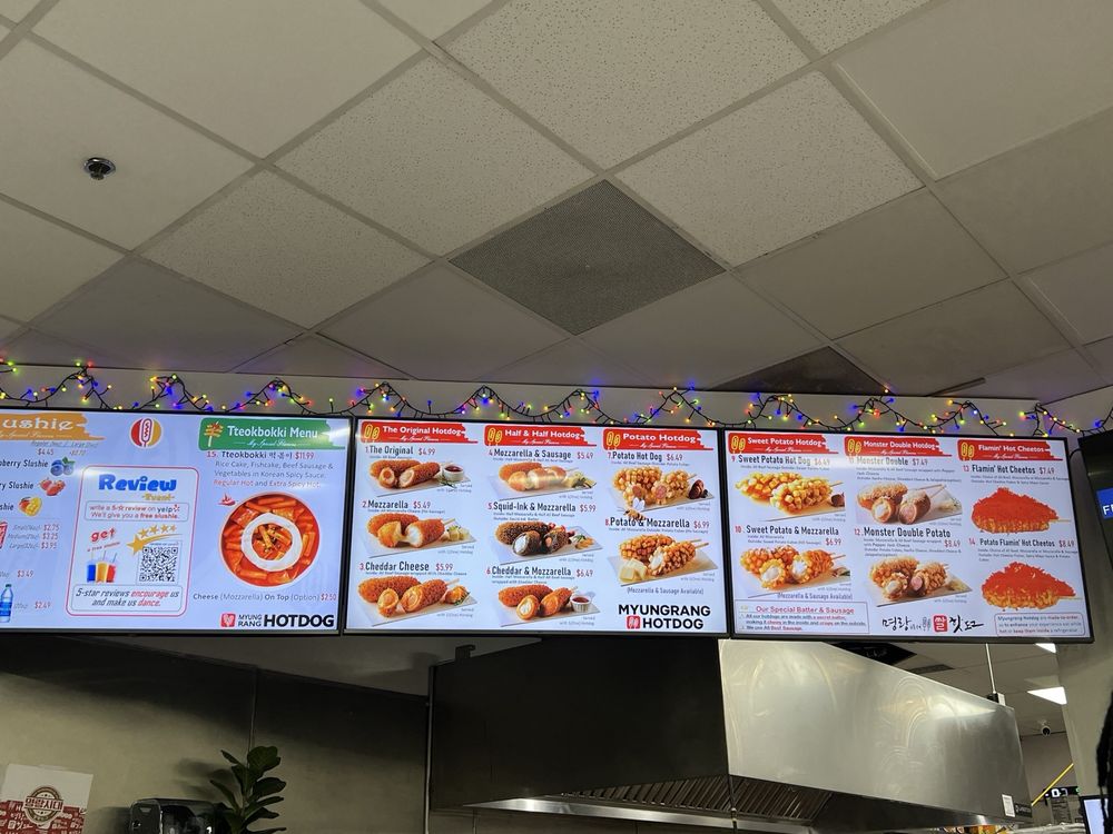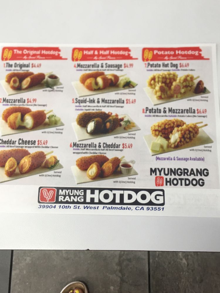 Myungrang Hotdog is a Korean hot dog brand located in Palmdale, CA, offering a unique and delicious menu. Customers rave about the variety of flavors, such as the tteokbokki, squid ink, and the popular Flamin' Hot Cheetos option. The #14 hot dog is a consistent favorite, and the rice cake dish with added cheese is a must-try. The welcoming staff and clean establishment provide a comfortable dining experience. Customers appreciate the affordable prices and quality of the food, making it a popular choice for locals. The innovative menu options, friendly service, and cozy ambiance make Myungrang Hotdog a standout destination for those seeking a tasty and satisfying meal.